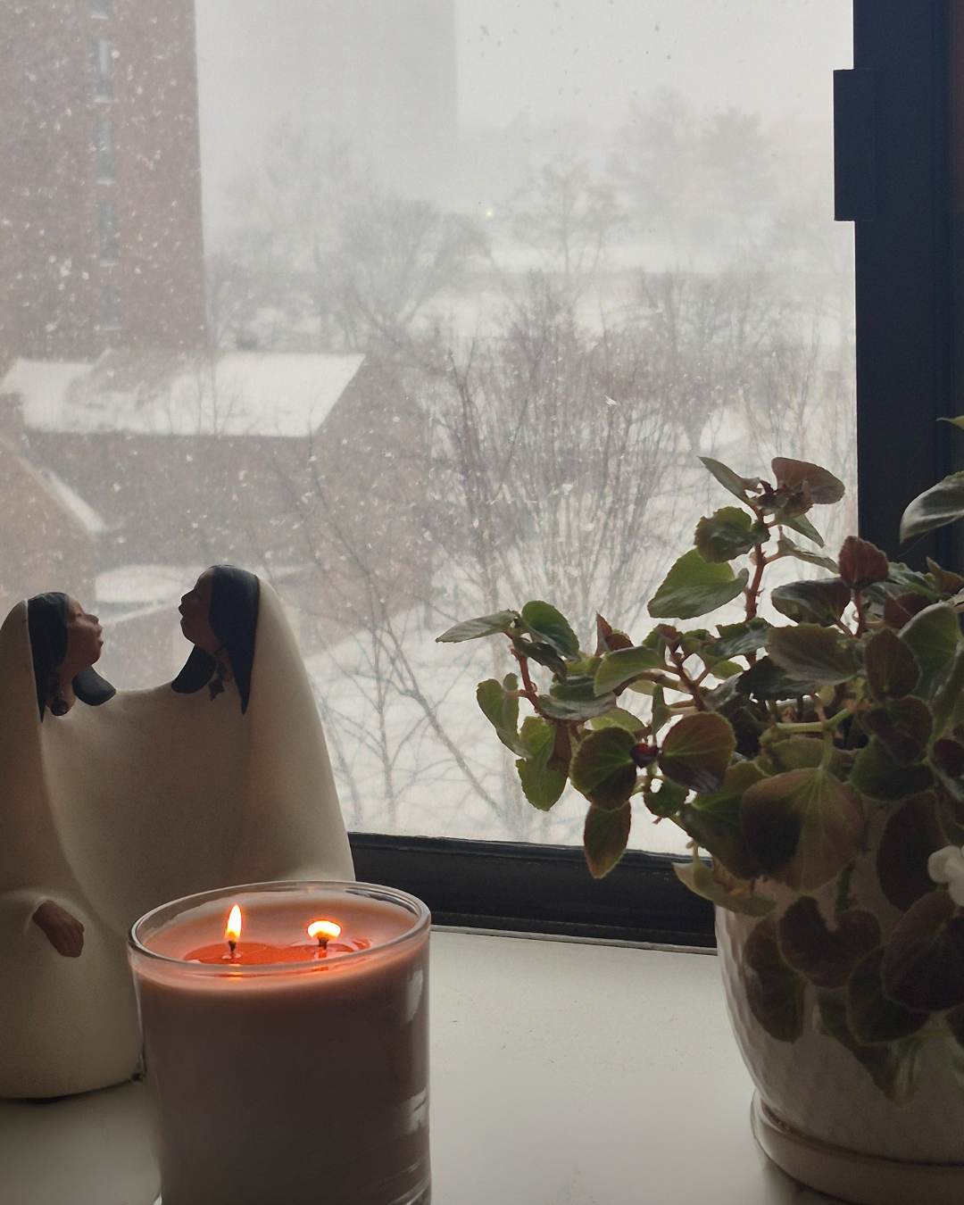 I’m bundled up in the living room, candles lit, jazz on in the background, cinnamon tea and coffee and my big jug of water directly within reach (Girlie Pop work-from-home Rule #1: Stay hydrated by always having at least 2-3 beverages going simultaneously at all times, haha), watching everything disappear behind a cloud of thick white magic as I type - and honestly, it feels like a sweet & gentle reminder.